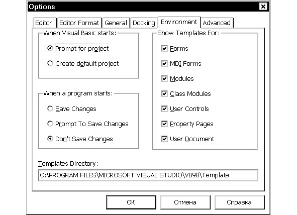 Для настройки режима автоматического сохранения проекта воспользуйтесь пунктом меню Tools – Options (Инструменты – Параметры). Откроется диалог Options (Параметры). Щелчком мыши перейдите на вкладку Environment (Среда) (Рис.2.31).