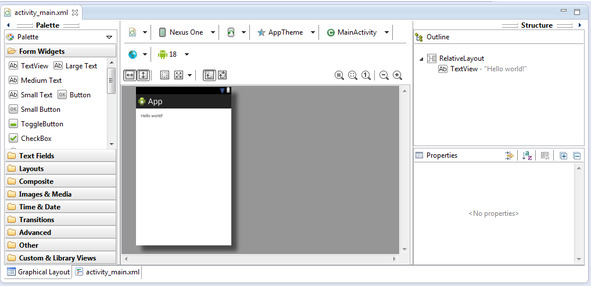 Для работы с XML-описанием GUI-интерфейса Activity-компонента ADT-плагин предлагает визуальный графический редактор.