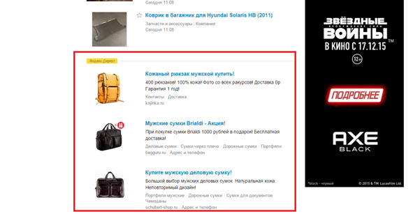 Поисковая реклама показывается в результатах поиска. Обязательное условие показа поисковой рекламы – наличие в явной форме поискового запроса, заданного пользователем.