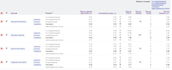 После того как мы выбрали нужные слова, жмем на кнопку «Посчитать». Видим прогноз бюджета (на картинке ниже).