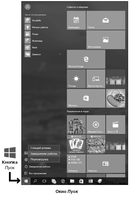 3. На экране появится окно раздела Пуск.