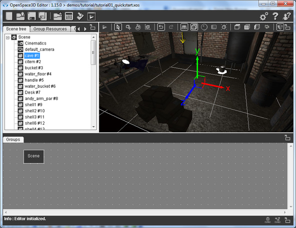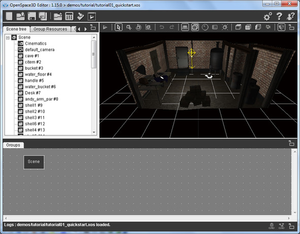 В качестве примера откроем готовую сцену tutorial01_quickstart. xos папки OpenSpace3Ddemos utorial с помощью меню Open scene или с помощью меню Import scene.