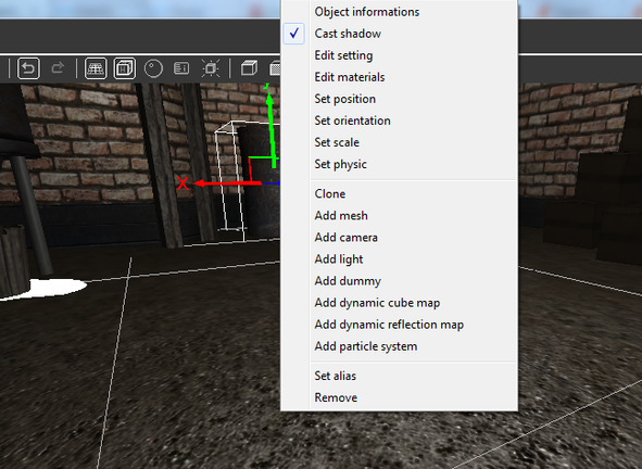 Для выбора объекта сцены кликнем на нем левой кнопкой мышки. После этого для редактирования его свойств или его удаления кликнем правой кнопкой мышки.