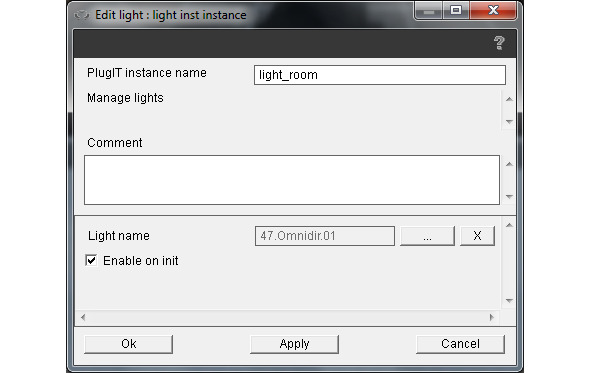 Нажмем правой кнопкой мышки на зоне редактирования функций и выберем object/light, свяжем этот PlugIT экземпляр с объектом Omnidir.
