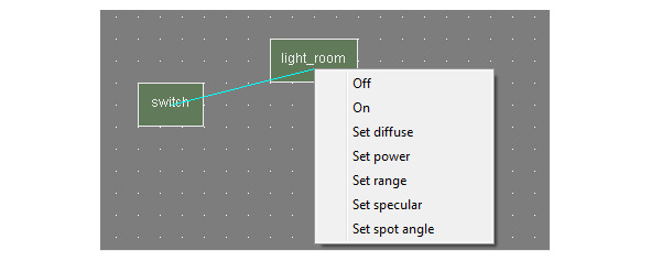 Нажмем правой кнопкой мышки на экземпляре switch и выберем LeftClick, свяжем его с экземпляром light_room, выбрав Off.
