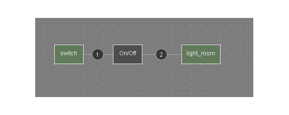 Нажмем правой кнопкой мышки на экземпляре switch и выберем LeftClick, свяжем его с экземпляром On/Off sequence, выбрав Input. Нажмем правой кнопкой мышки на экземпляре On/Off и выберем Out1, свяжем его с экземпляром light_room, выбрав Off. Нажмем правой кнопкой мышки на экземпляре On/Off и выберем Out2, свяжем его с экземпляром light_room, выбрав On.