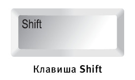 Эта клавиша делает букву заглавной (большой) и помогает печатать то, что размещено на кнопках с несколькими символами в верхней строке, например на кнопках с цифрами (об этом чуть ниже).