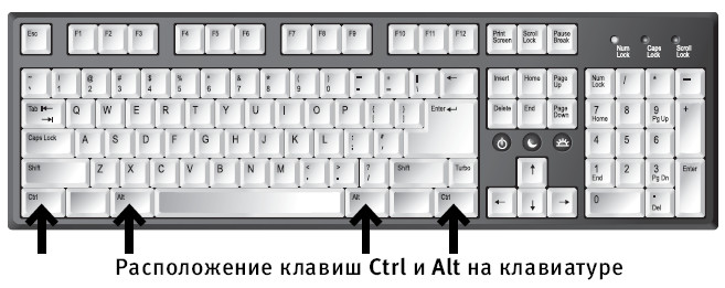 Клавиш Ctrl (контрл) и Alt (альт) на клавиатуре тоже две – по одной справа и слева в нижнем ряду. Они используются в комбинации с другими клавишами. Нам с вами они понадобятся, чтобы менять язык, на котором вы общаетесь с компьютером, с русского на английский и обратно.