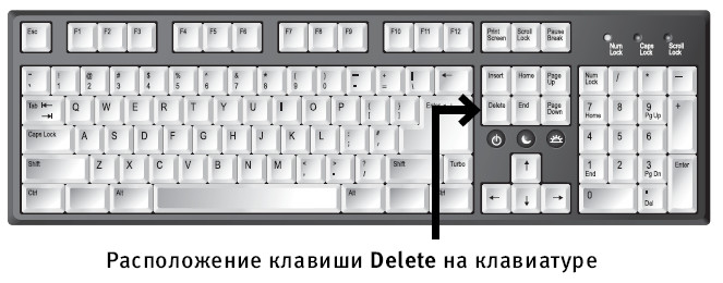 Клавиша Del (дэлит) – главный киллер – находится в крайнем правом верхнем ряду клавиатуры. На клавиатурах разных брендов размещается либо слово целиком, либо его сокращение – Del или Delete, то есть удалить.