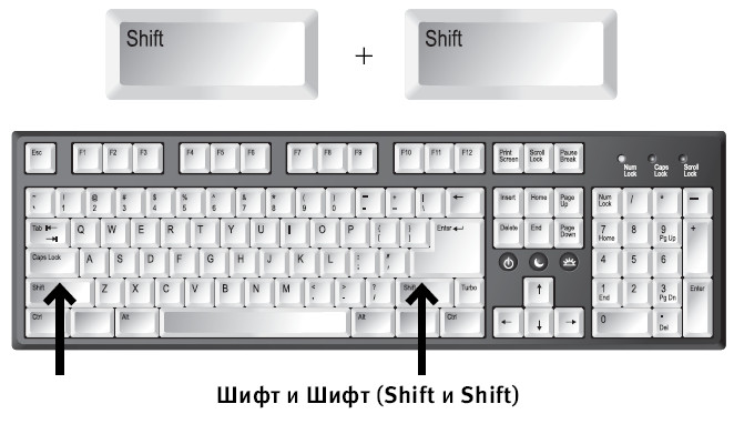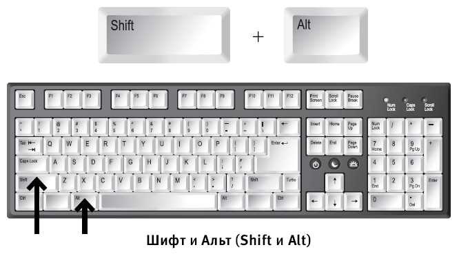 Чтобы переключить язык, нужно нажать одновременно две клавиши на клавиатуре.