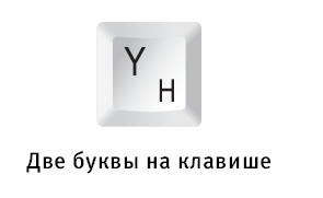 Если посмотреть на клавиши с буквами, то сверху нарисована латинская буква, а снизу – русская.