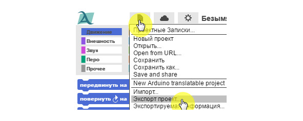 При загрузке нового проекта Snap4Arduino не предлагает сохранять текущий проект! Помните об этом, и сохраняйте проект как можно чаще.