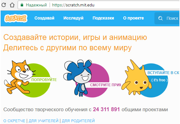 Сайт Скретч расположен по адресу scratch.mit.edu.