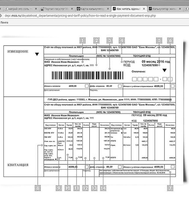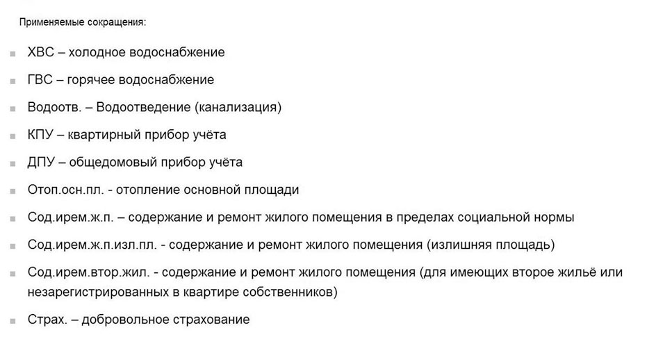 Не всегда всем жителям ясна структура ЕПД и значение некоторых сокращений. Но на сайте департамента постарались прояснить, что означают те или иные поля в структуре ЕПД, а также используемые сокращения в графе «Вид платежа». Почитайте (рис. 14–16):