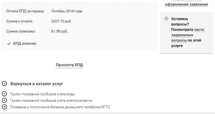 Платеж обычно проходит в течение трех дней. После вы можете вновь зайти в свой личный кабинет, чтобы убедиться – прошла ли оплата. Нажмите на «Запросить ЕПД» и увидите слова «ЕПД оплачен», выделенные зеленым цветом (рис. 22):