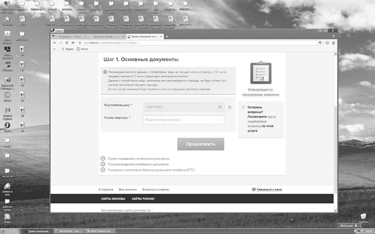 Нажимайте на «Продолжить». Попадаете на страницу «Показания приборов учета» (рис. 30):