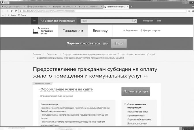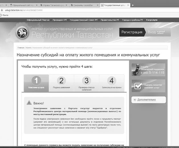 Кроме того, в ряде регионов прогресс дошел и до этой сферы – подать заявление на получение субсидии на оплату жилья и коммунальных услуг можно в электронном виде. Вот пример Татарстана по адресу uslugi.tatarstan.ru/service/detail/15444 (рис. 38):