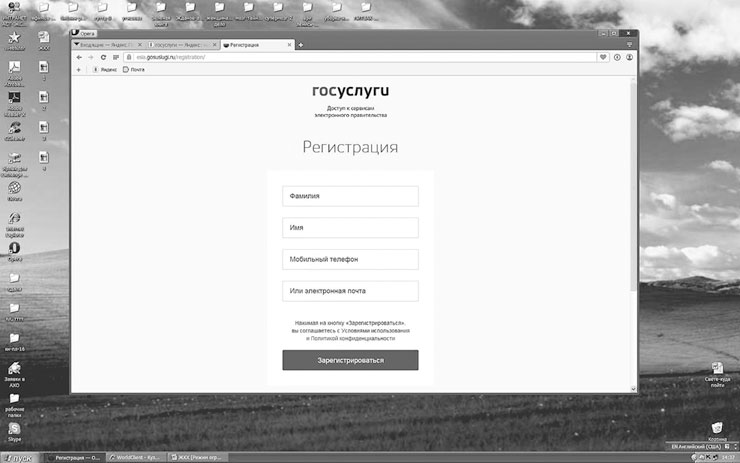 Справа вы видите табличку «Вход в госуслуги», где вам надо зарегистрироваться. Жмем мышью – получаем анкету (рис. 54).