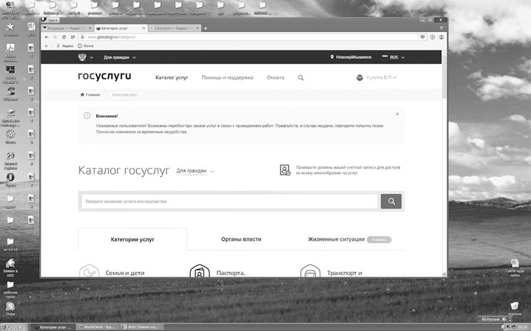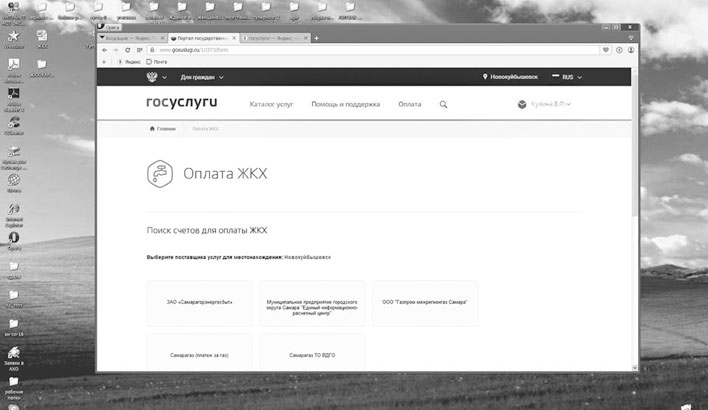 Там пошагово дается инструкция, как произвести оплату. Нажмите мышью на «Заполните заявление в электронном виде» или «Получить услугу» – и перед вами предстанет список поставщиков услуг, в нашем случае – города Новокуйбышевска (рис. 62):
