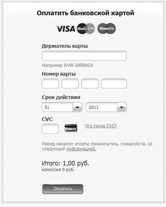 Например, ваш поставщик – ЗАО «Самарагорэнергосбыт». Кликаете на него. Далее – «Выберите тип услуги: коммунальные». И введите в пустое окошко код или номер лицевого счета, указанный в вашей квитанции. Нажмите на «Далее» и следуете простым пошаговым подсказкам. Когда дойдете до оплаты, то обычно оплата банковской картой выглядит так (рис. 63):