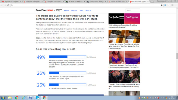 And the latest episode: I helped my colleagues seed a story about a contact zoo being at law with a video studio. The point is that in the process of filming a video ad, another raccoon allegedly stripped a bra off the starlet and fell into a shock, refusing food and further engagement. This exasperated the zoo manager who decided to sue the studio.