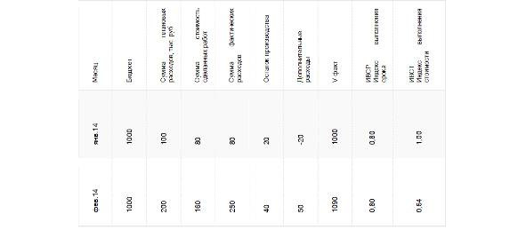•Стоимость сделанных работ – то, что было запланировано и в действительности потрачено на сделанную работу. Сюда входит стоимость работ, материалов, внешних услуг.