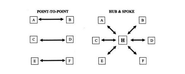 Диаграмма Модели интеграции типа «Point-to-point» и «Hub & Spoke»