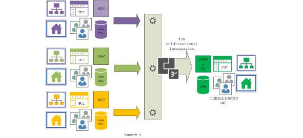Каждая компания имеет собственное ERP решение. Задача ИТ обеспечить сбор данных с различных систем в холдинг для последующего анализа и формирования отчетов для руководства. Для этого в холдинге развернута система OLAP & BI и система хранения данных (Data Warehouse DWH). Для обеспечения интеграции данных будет использоваться решение ESB «шина».