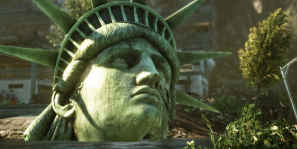 Пример из игры Crysis 2 (2011, Crytek) – исследуя улицы Нью-Йорка, на одном из уровней можно найти оторванную голову Статуи Свободы. Встретив необычный для этого места объект, игрок сразу же задастся вопросом о том, каким образом эта часть статуи оказалась здесь, тем самым неосознанно запомнит этот уровень.