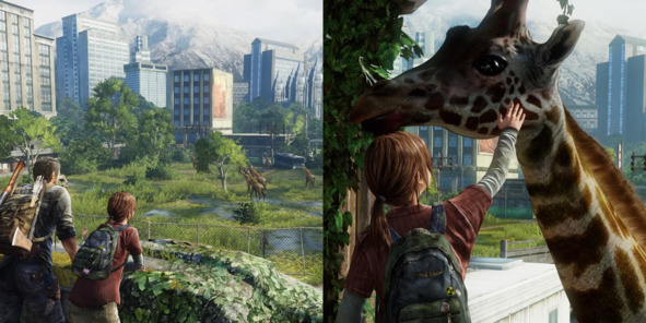 В The Last of Us (2013, Naughty Dog) есть милейшая сцена встречи главных героев с дикими жирафами. Добравшись до Солт-Лейк-Сити, Джоэл и Элли обнаруживают стаю жирафов, свободно блуждающих в опустевшем городе.