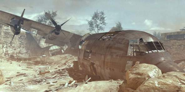 Уровень «Afghan» из Call of Duty: Modern Warfare 2 (2009, Infinity Ward) служит отличным примером использования террейна (или природного ландшафта) в качестве структурной геометрии. Компонентами, формирующими тело уровня, здесь будут скалы, сквозная сеть пещер, небольшой бункер, и центральный элемент – упавший военный самолет.