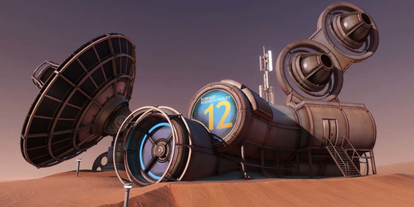 На изображение ниже можно увидеть модуль исследовательской станции с гигантской антенной. Если из кадра убрать лестницу со ступеньками и посмотреть на остальные элементы сцены, то определить по ним корректный масштаб всего строения станет довольно проблематично.