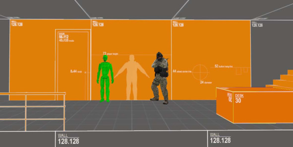 При проектировании зданий в архитектуре очень часто рядом с фасадом архитектор изображает фигуру человека в масштабе чертежа. Она позволяет создать правильное соотношение всех элементов здания. Этот же принцип используется и в дизайне уровней.