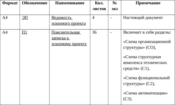 В соответствии с ГОСТ 34.201—89 в состав эскизного проекта входит ведомость эскизного проекта.