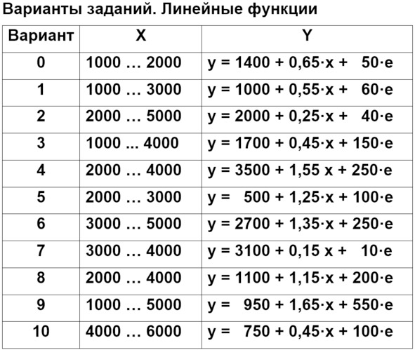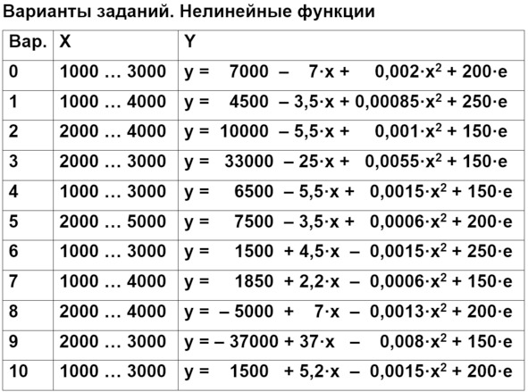 В каждом варианте рассматриваются два набора данных – примеры линейной и нелинейной регрессии. Анализ проводится для обоих случаев.