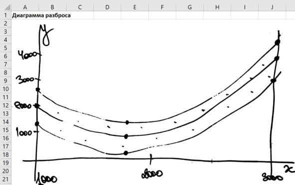 Сделайте зарисовки общей формы зависимости и диаграммы разброса на бумаге. Вставьте зарисовку в отчёт.