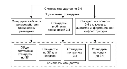 • комплекс общесистемных стандартов по ЗИ (общие требования по ЗИ в различных областях деятельности, терминология в области ЗИ);