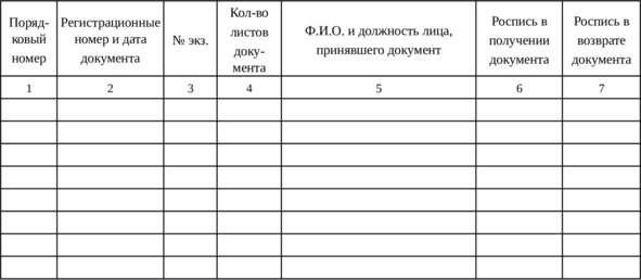 Возврат ДСП-документов секретарям (делопроизводителям) структурных подразделений производится под роспись секретаря (делопроизводителя) в «Журнале учета входящих документов «Для служебного пользования».