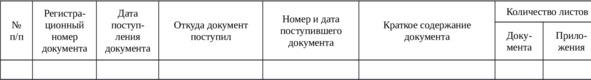 учета входящих документов «Для служебного пользования»