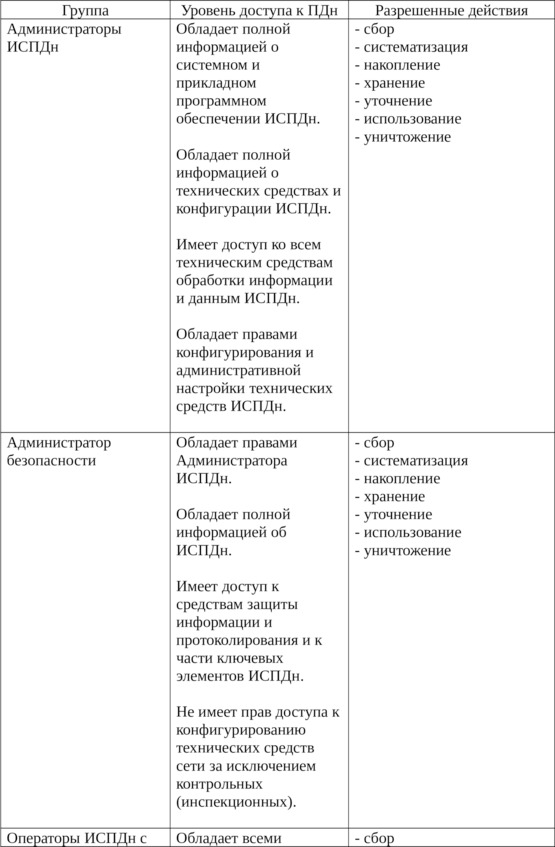 Перечень групп, участвующих в обработке персональных данных в ИСПДн