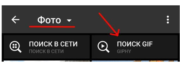В мобильном телефоне выбираем Галерея и выбираем уже сохраненную картинку или нажимаем Поиск GIF.