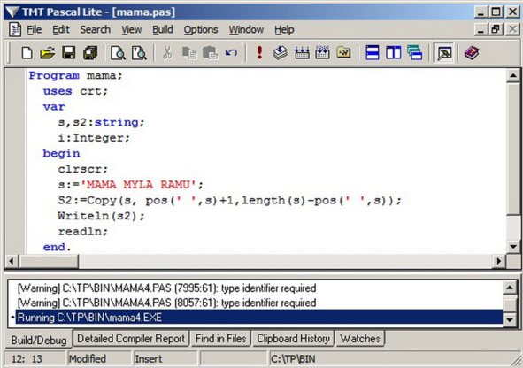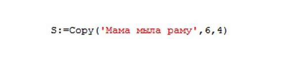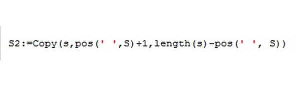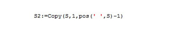 Предположим, переменной S присвоено значение «Мама мыла раму»; но нам известно только, что в ней находится три слова (длина которых неизвестна) и необходимо получить первое слово из этой строки, отправив его в переменную S2. Это действие мы можем выполнить так: