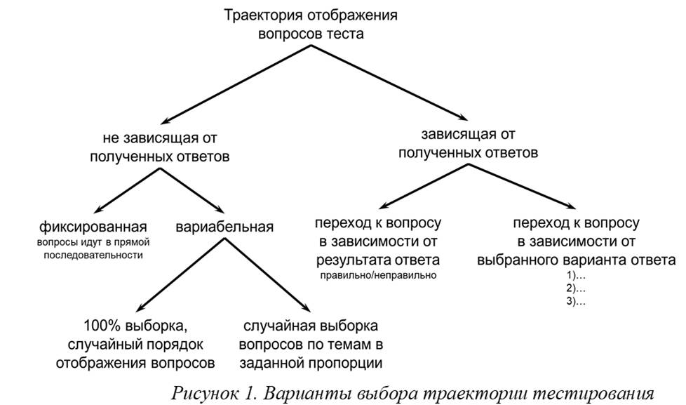 Например, траектория отображения вопросов в прямой последовательности без возможности исправления уже выданного ответа вполне оправдана, когда последующий вопрос содержит в себе подсказку для ответа на предыдущий. Очевидно, что и применение «шпаргалок» для такого рода тестов будет наиболее эффективно.