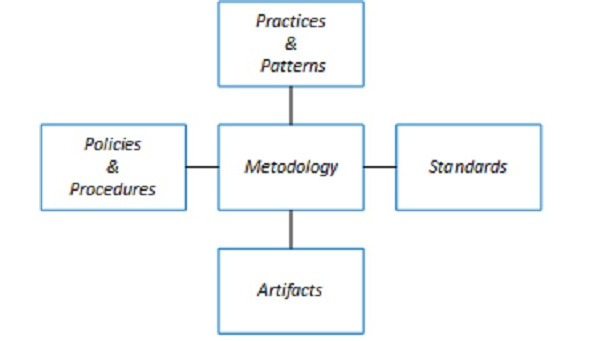 • Methodology is the main element of the approach. It defines the company’s processes for developing, updating, and implementing the Enterprise Architecture, their roles and responsibilities.