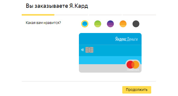 Выбираем цвет и дизайн карты и переходим к следующему шагу (кнопка «Продолжить»).