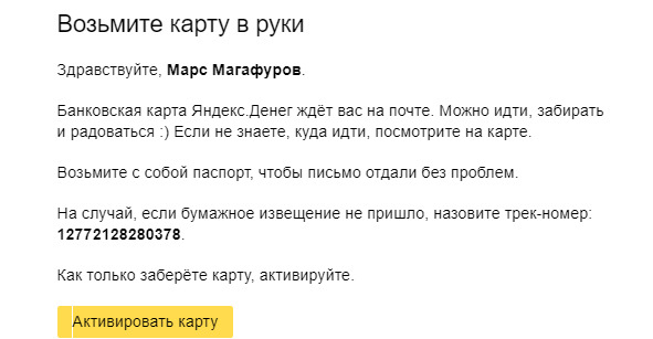 Первый способ – просто нажать кнопку «Активировать карту» в письме, которое пришло вам на e-mail.