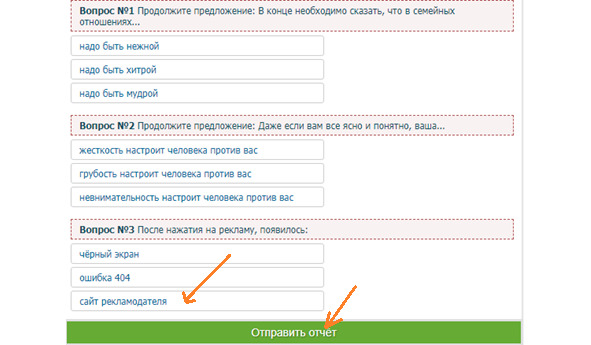 После чего проделываете те же шаги для ответа на второй вопрос. Чтобы ответить на третий вопрос, вам нужно перейти на сайт рекламодателя, проделать требуемое действие, а затем в буксе указать, что появилось после клика по рекламе.