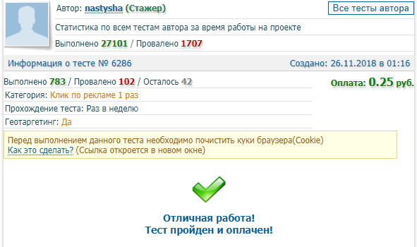 Все, тест пройден. Нажмите на кнопку «Отправить отчет». На ваш баланс начислится 25 копеек. Немного, конечно, но все же лучше, чем ничего.