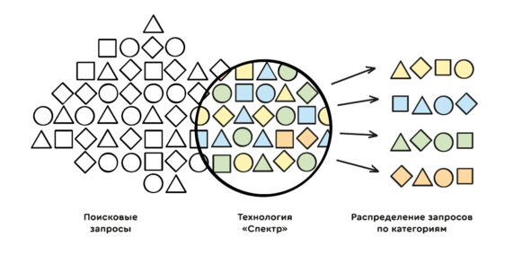 Поисковые системы используют алгоритм распределения запросов по категории тематик. Он работает следующим образом: поисковая система стремится каждый запрос и выдачу по запросам разбить на наиболее популярные ответы, если в запросе конкретно не выражена направленность. Например, в запросе «айфон» нет никакой формулировки конкретной задачи. Чего хочет человек? Посмотреть фотографии? Видео? Почитать отзывы? Узнать технические характеристики или дату выхода? Ознакомиться с новостями?