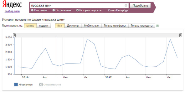 Анализ сезонности с помощью «Яндекс Wordstat»